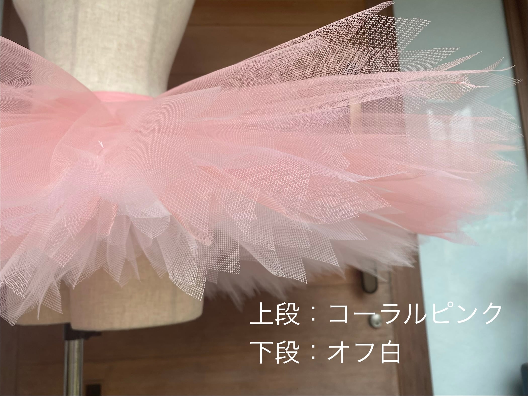 ②こちらの多配色オプションページで2段目(中段)、3段目(下段)のチュールのご希望色を記入し、カートへ入れてください。